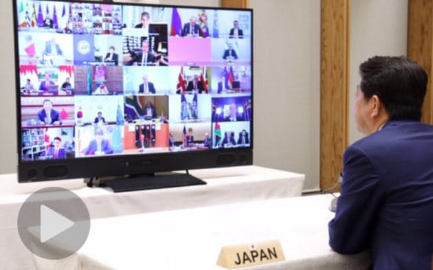 議長国のサウジアラビアが呼びかけて開催した。G20首脳でテレビ会議をするのは初めて。