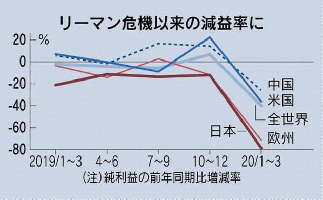 世界の企業、1~3月4割減益 日欧は7~8割減 - 日本経済新聞