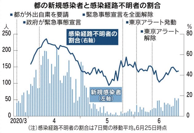 「専門家は第2波ではないと分析している」。5月25日の緊急事態宣言の解除後、2番目に多い54人の感染者が26日に確認されたことについて、小池百合子知事は急激…
