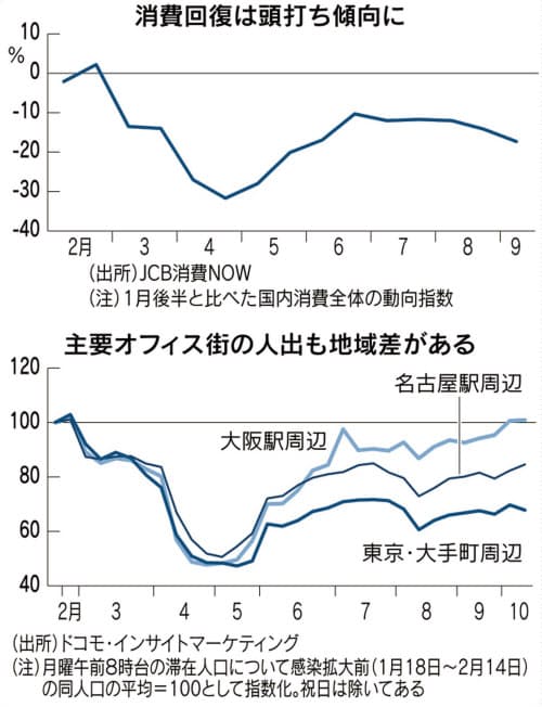 ただ、3密を避ける活動は各地で続き、コロナ下での人々の行動変化は消費に影響する。