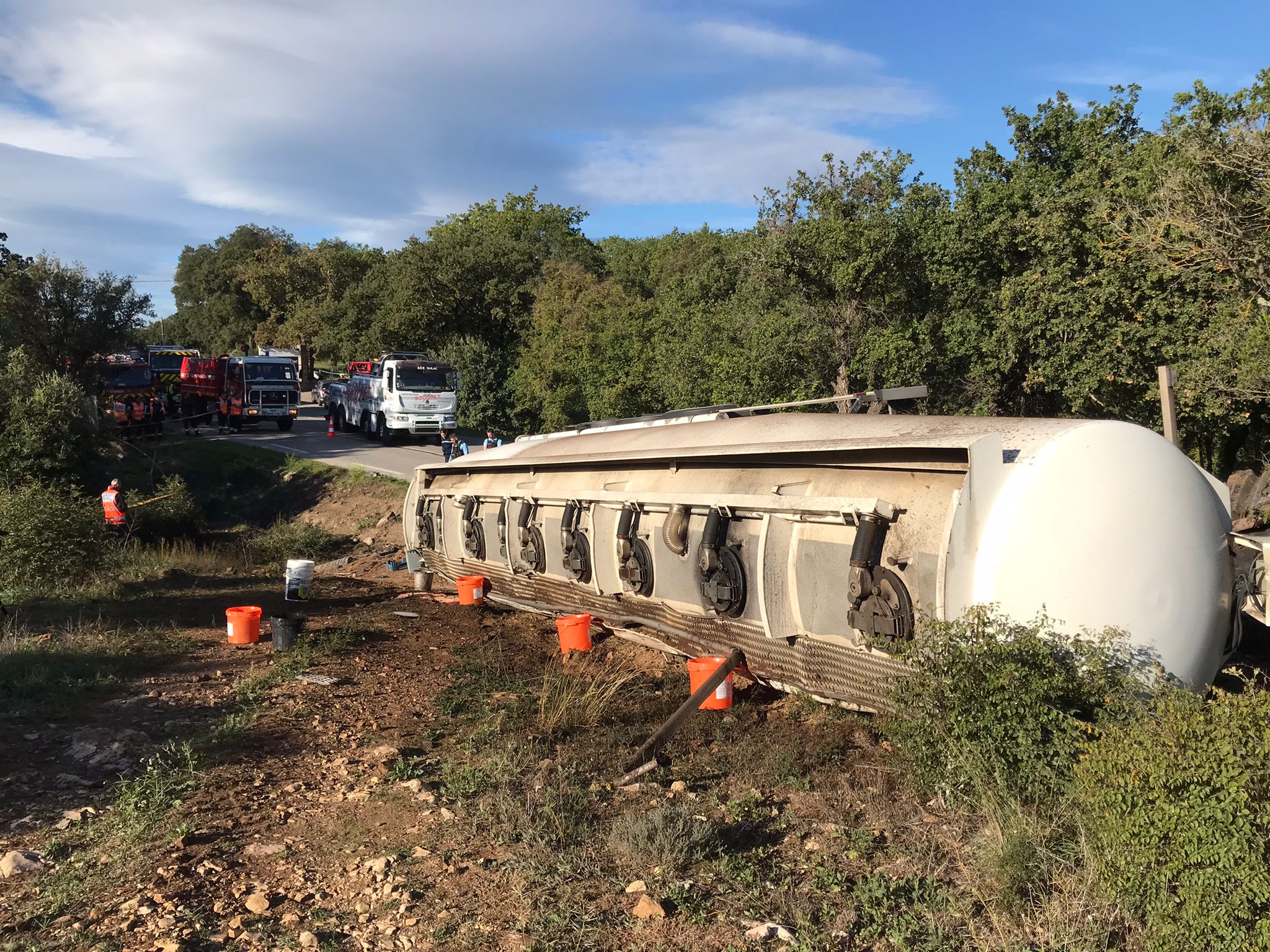 10h56 : [1/3] A Flassans-sur-Issole dans le Var, un camion-citerne s'est renversé ce matin, route de Nice, en bordure du Domaine du Lac, avec à son bord 30.000 litres de gasoil. Le conducteur est indemne, une fuite de carburant est constatée. #carburant #accident #Transports #pollution